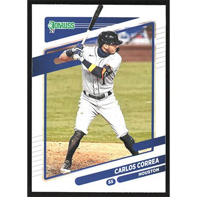 This is a 2021 Donruss Carlos Correa baseball card. The card is #76 and pictures show condition.