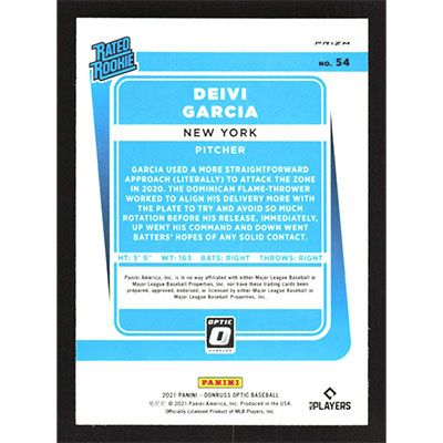 This is a 2021 Donruss Optic Lime Green Deivi Garcia Rated Rookie baseball card. The card is #54 and pictures show condition. Team(s): New York Yankees Rookie Card (RC)
