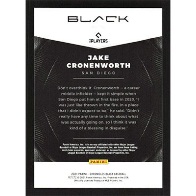 This is a 2021 Panini Chronicles Black Jake Cronenworth baseball card. The card is #16 and pictures show condition. Team(s): San Diego Padres Rookie Card (RC)