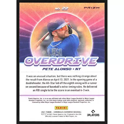 This is a 2021 Panini Chronicles Overdrive Building Blocks Pete Alonso baseball card. The card is #22 and pictures show condition.