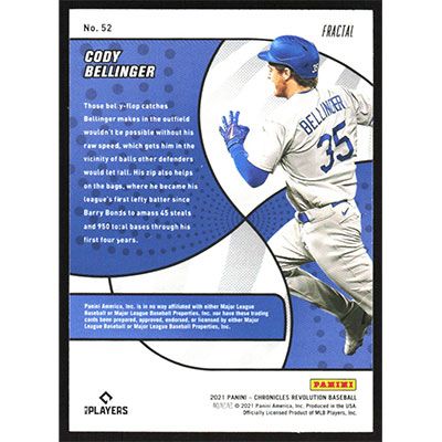 This is a 2021 Panini Chronicles Revolution Fractal Cody Bellinger baseball card. The card is #52 and pictures show condition. Team(s): Los Angeles Dodgers