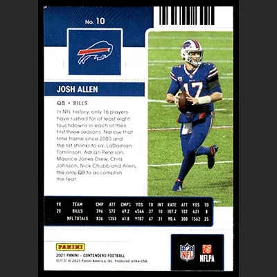 This is a 2021 Panini Contenders Josh Allen football card. The card is #10 and is in NM-MT condition.
