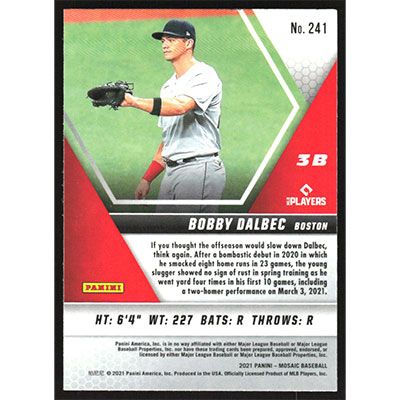 This is a 2021 Panini Mosaic Bobby Dalbec baseball card. The card is #241 and pictures show condition.