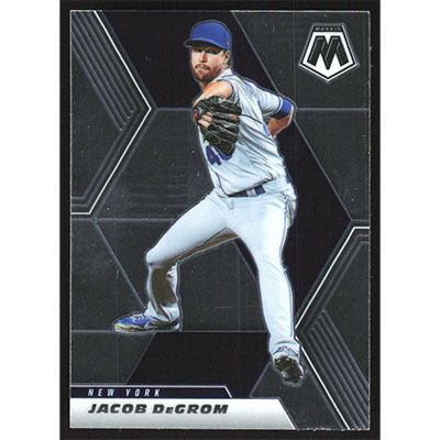 This is a 2021 Panini Mosaic Jacob deGrom baseball card. The card is #97 and pictures show condition.