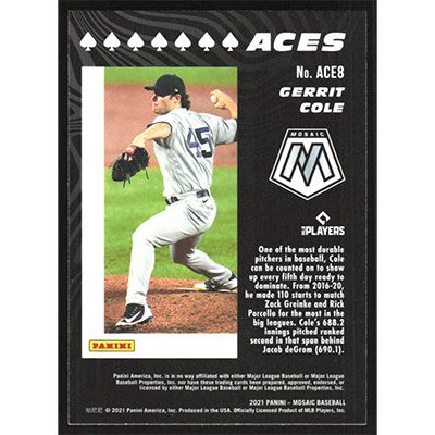 This is a 2021 Panini Mosaic Aces Gerrit Cole baseball card. The card is #ACE8 and pictures show condition.