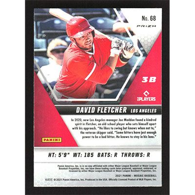 This is a 2021 Panini Mosaic Blue Camo David Fletcher baseball card. The card is #68 and pictures show condition.