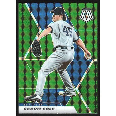 This is a 2021 Panini Mosaic Green Gerrit Cole baseball card. The card is #87 and pictures show condition.