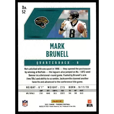 This is a 2021 Panini Phoenix Mark Brunell football card. The card is #52 and pictures show condition.