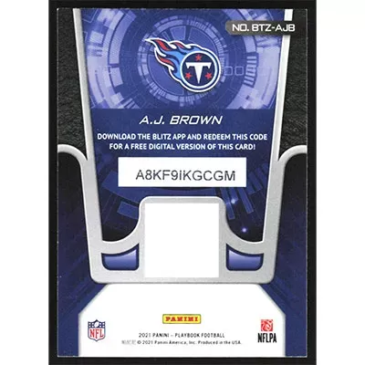 This is a 2021 Panini Playbook BLITZ A.J. Brown football card. The card is #BTZ-AJB and pictures show condition.