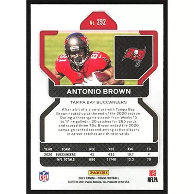 This is a 2021 Panini Prizm Antonio Brown football card. The card is #292 and pictures show condition.