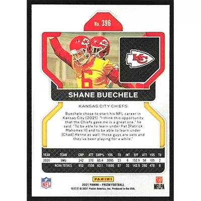 This is a 2021 Panini Prizm Shane Buechele football card. The card is #396 and pictures show condition.