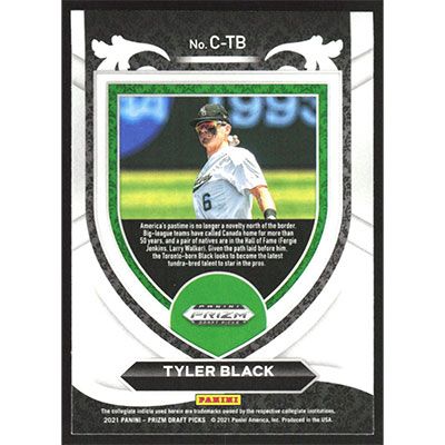 This is a 2021 Panini Prizm Draft Picks Crusade Tyler Black baseball card. The card is #C-TB and pictures show condition.