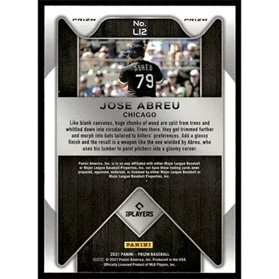 This is a 2021 Panini Prizm Lumber Inc. Silver Jose Abreu baseball card. The card is #LI2 and pictures show condition.