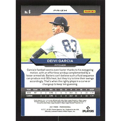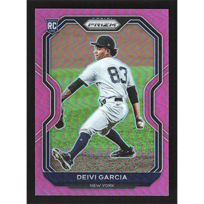 This is a 2021 Panini Prizm Pink Deivi Garcia baseball card. The card is #6 and pictures show condition.