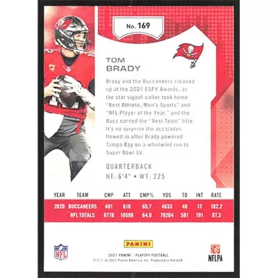 This is a 2021 Playoff Tom Brady football card. The card is #169 and pictures show condition.