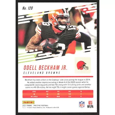 This is a 2021 Prestige Odell Beckham Jr. football card. The card is #120 and pictures show condition.