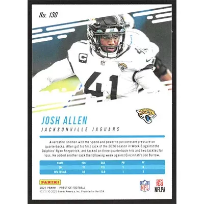 This is a 2021 Prestige Josh Allen football card. The card is #130 and pictures show condition.