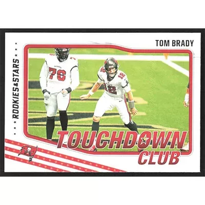 This is a 2021 Rookies & Stars Touchdown Club Tom Brady football card. The card is #TDC-7 and pictures show condition. Team: Tampa Bay Buccaneers