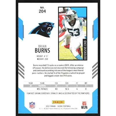 This is a 2021 Score Brian Burns football card. The card is #204 and pictures show condition.
