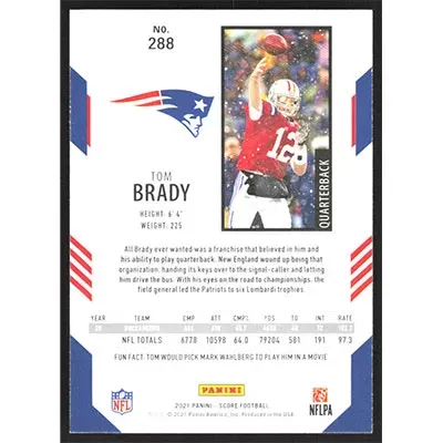 This is a 2021 Score Tom Brady football card. The card is #288 and pictures show condition.