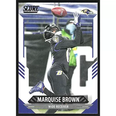 This is a 2021 Score Marquise Brown football card. The card is #89 and pictures show condition.