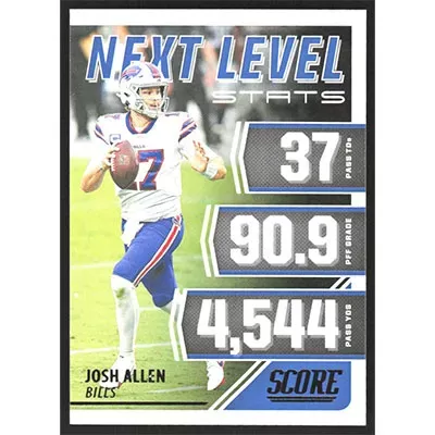 This is a 2021 Score Next Level Stats Josh Allen football card. The card is #NL15 and pictures show condition.