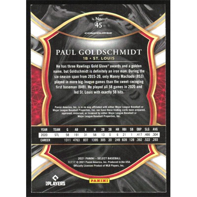 This is a 2021 Select Paul Goldschmidt baseball card. The card is #45 and pictures show condition.