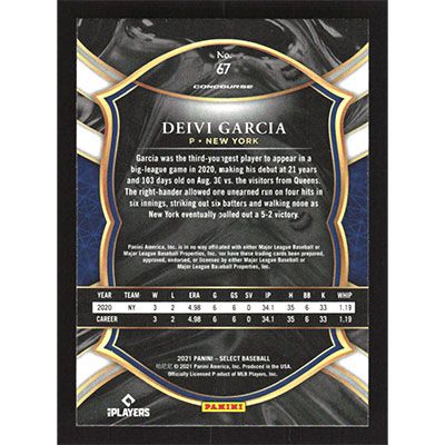 This is a 2021 Select Deivi Garcia baseball card. The card is #67 and pictures show condition.