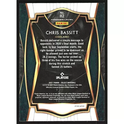 This is a 2021 Select Scope Chris Bassitt baseball card. The card is #112 and pictures show condition.