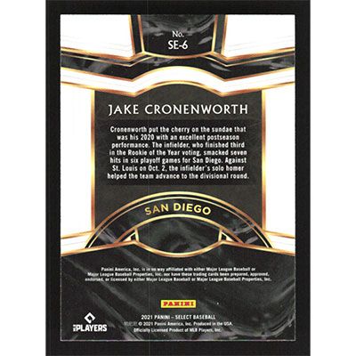 This is a 2021 Select Sensations Jake Cronenworth baseball card. The card is #SE-6 and pictures show condition.