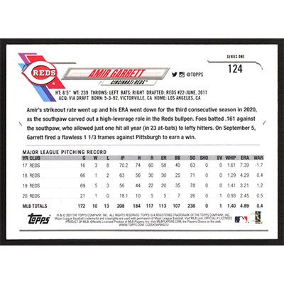 This is a 2021 Topps Amir Garrett baseball card. The card is #124 and pictures show condition.