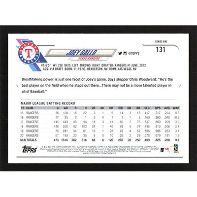 This is a 2021 Topps Joey Gallo baseball card. The card is #131 and pictures show condition.