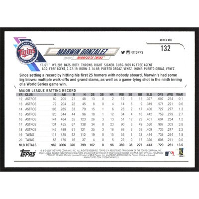 This is a 2021 Topps Marwin Gonzalez baseball card. The card is #132 and pictures show condition.