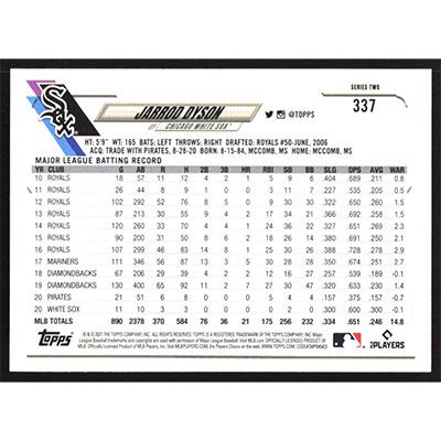 This is a 2021 Topps Jarrod Dyson baseball card. The card is #337 and pictures show condition.