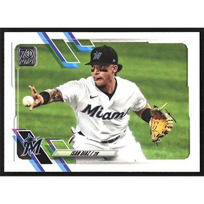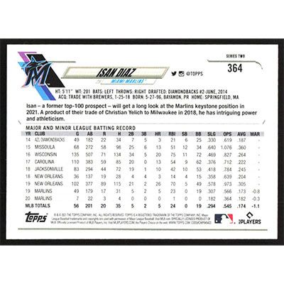 This is a 2021 Topps Isan Diaz baseball card. The card is #364 and pictures show condition.