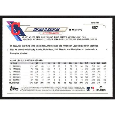 This is a 2021 Topps Delino DeShields baseball card. The card is #602 and pictures show condition.