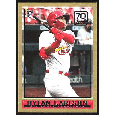 This is a 2021 Topps 70 Years of Topps Baseball Dylan Carlson baseball card. The card is #70YT-48 and pictures show condition. Team(s): St. Louis Cardinals Rookie Card (RC)