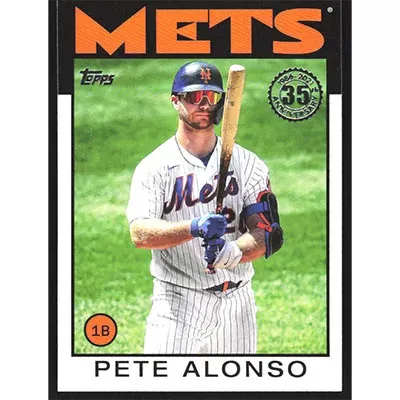 This is a 2021 Topps '86 Pete Alonso baseball card. The card is #86B-65 and pictures show condition.