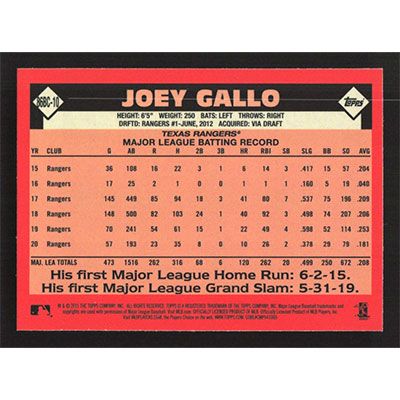 This is a 2021 Topps '86 Silver Pack Chrome Joey Gallo baseball card. The card is #86BC-10 and pictures show condition.