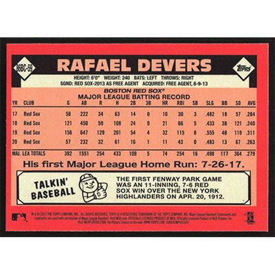 This is a 2021 Topps '86 Silver Pack Chrome Rafael Devers baseball card. The card is #86BC-59 and pictures show condition.