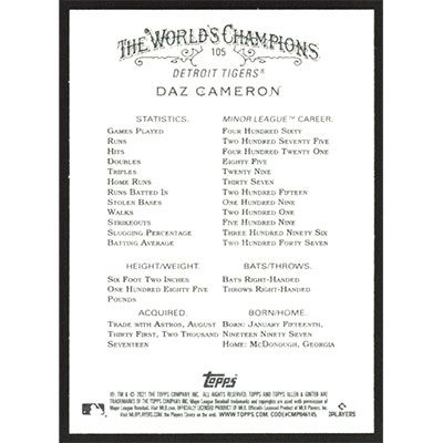 This is a 2021 Topps Allen & Ginter Daz Cameron baseball card. The card is #105 and pictures show condition. Team(s): Detroit Tigers Rookie Card (RC)