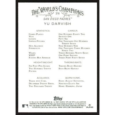 This is a 2021 Topps Allen & Ginter Yu Darvish short print baseball card. The card is #316 and pictures show condition.