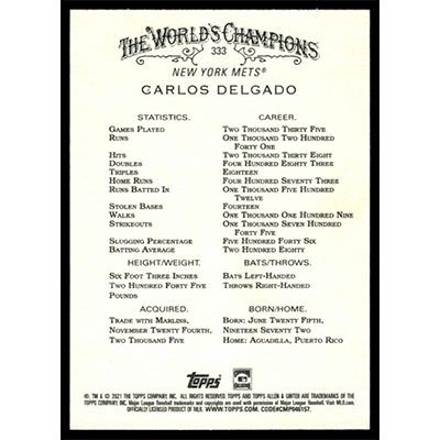 This is a 2021 Topps Allen & Ginter Carlos Delgado short print baseball card. The card is #333 and pictures show condition.
