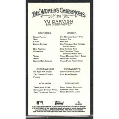 This is a 2021 Topps Allen & Ginter Mini Yu Darvish short print baseball card. The card is #316 and pictures show condition. Team(s): San Diego Padres