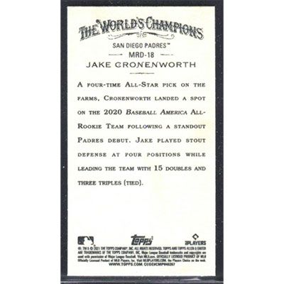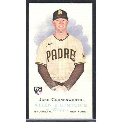 This is a 2021 Topps Allen & Ginter Mini Rookie Design Variations Jake Cronenworth baseball card. The card is #MRD-18 and pictures show condition. Team(s): San Diego Padres Rookie Card (RC)