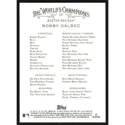 This is a 2021 Topps Allen & Ginter X Bobby Dalbec baseball card. The card is #121 and pictures show condition. Team(s): Boston Red Sox Rookie Card (RC)