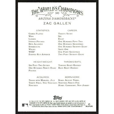 This is a 2021 Topps Allen & Ginter X Zac Gallen short print baseball card. The card is #343 and pictures show condition. Team(s): Arizona Diamondbacks