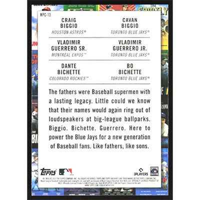 This is a 2021 Topps Archives Movie Poster Cards Craig Biggio, Cavan Biggio, Dante Bichette, Bo Bichette, Vladimir Guerrero and Vladimir Guerrero Jr. baseball card. The card is #MPC-13 and pictures show condition.