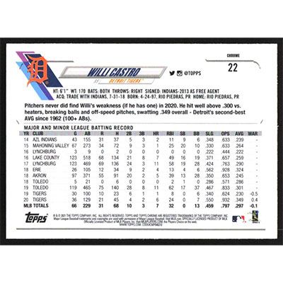 This is a 2021 Topps Chrome Willi Castro baseball card. The card is #22 and pictures show condition.