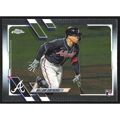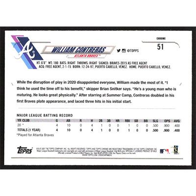 This is a 2021 Topps Chrome William Contreras baseball card. The card is #51 and pictures show condition.